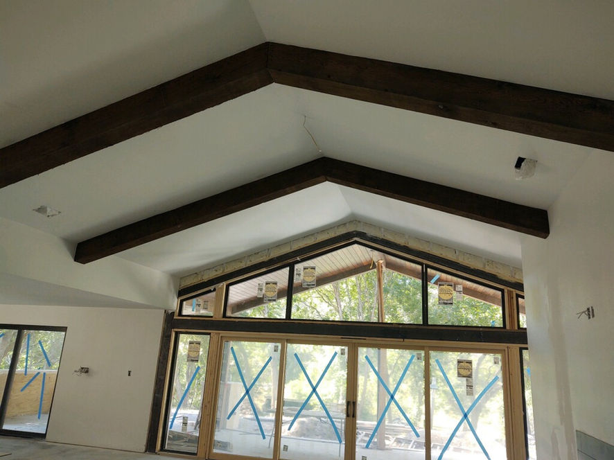 Large sliding glass doors and custom clerestory windows open up the interior to the 1600 sf exterior porch which is framed with mass timber trusses to keep the view to the river as unobstructed as possible and provide lots of entertainment space with a fully equipped outdoor kitchen. Timber trusses with turnbuckle details continue inside to keep the vaulting continuous and maintain the sensation of the indoor and outdoor spaces as continuous.